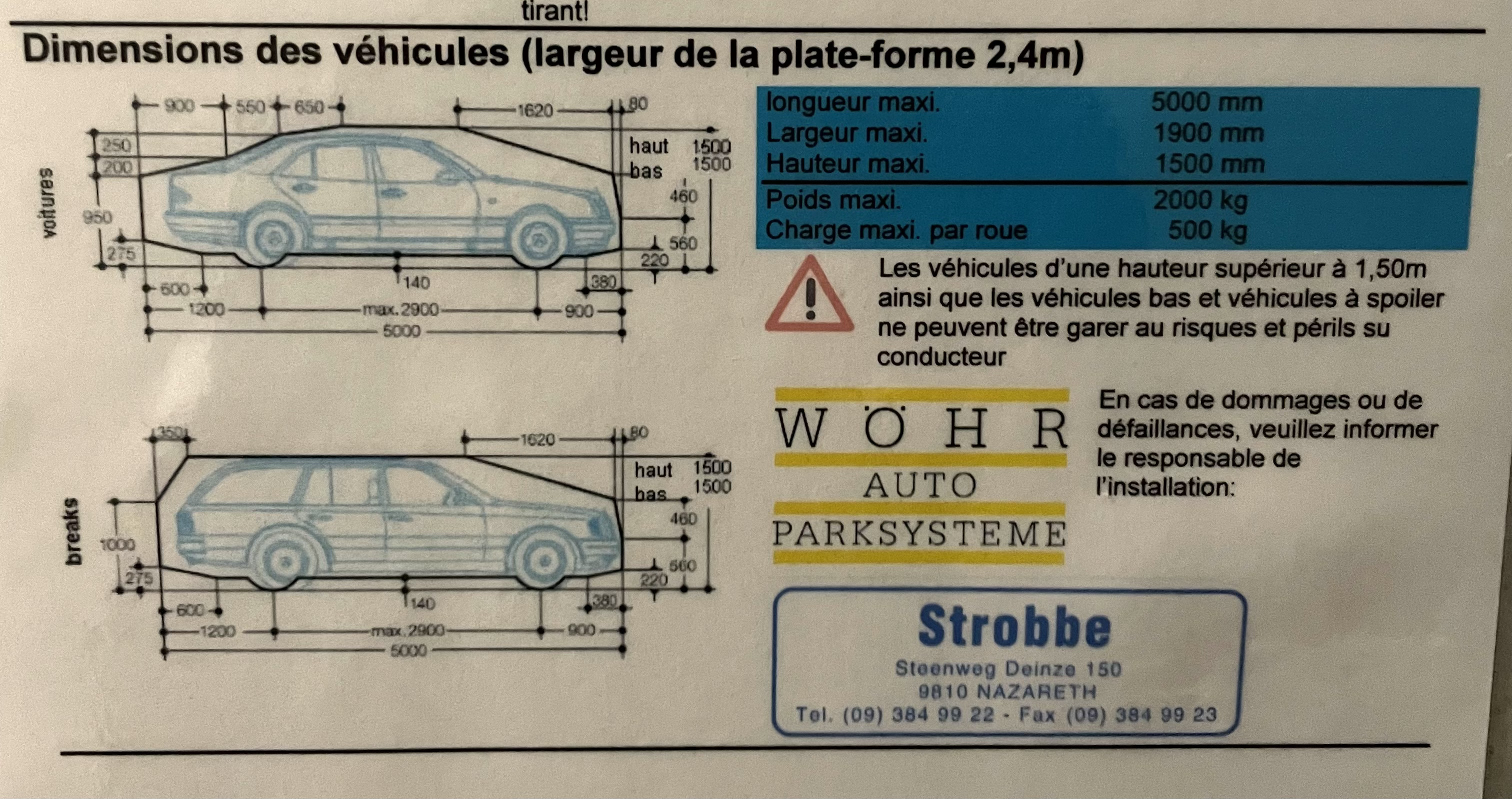 Hoogte wagen mag niet meer zijn dan1,5m!