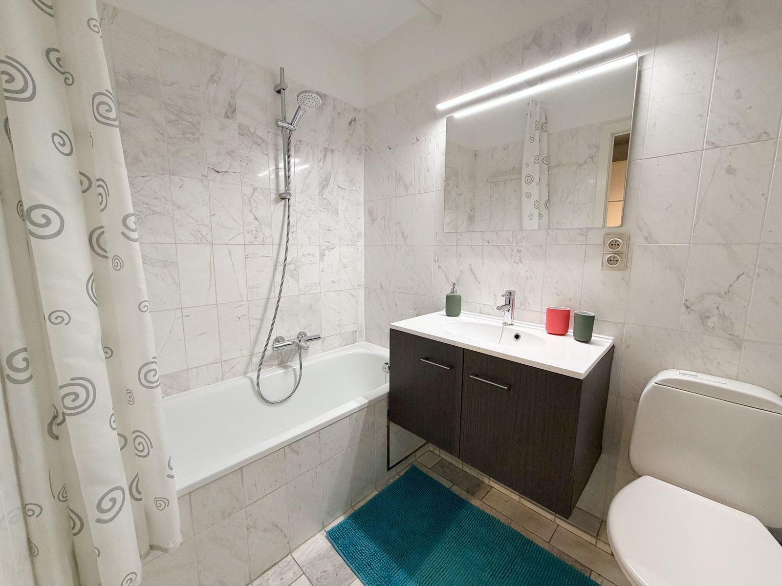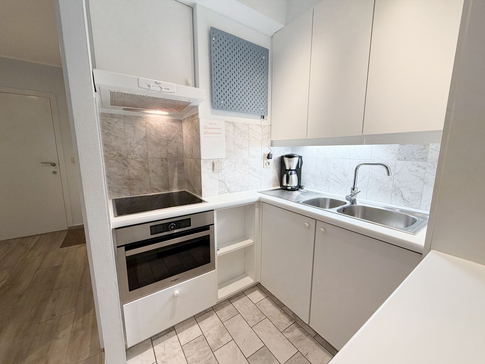 Indeling: Lichtrijke woonkamer met volledig ingerichte keuken, Badkamer uitgerust met ligbad en toilet. In dezelfde ruimte bevindt zich een praktisch opklapbed, waardoor de studio flexibel wordt ingericht als woon- en slaapruimte.