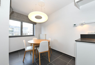 Indeling: inkomhal, lichtrijke woonkamer met zonnig terras, volledig ingerichte keuken met aansluitende berging voorzien van aansluiting wasmachine/ droogkast, slaaphoek, badkamer met inloopdouche en toilet.