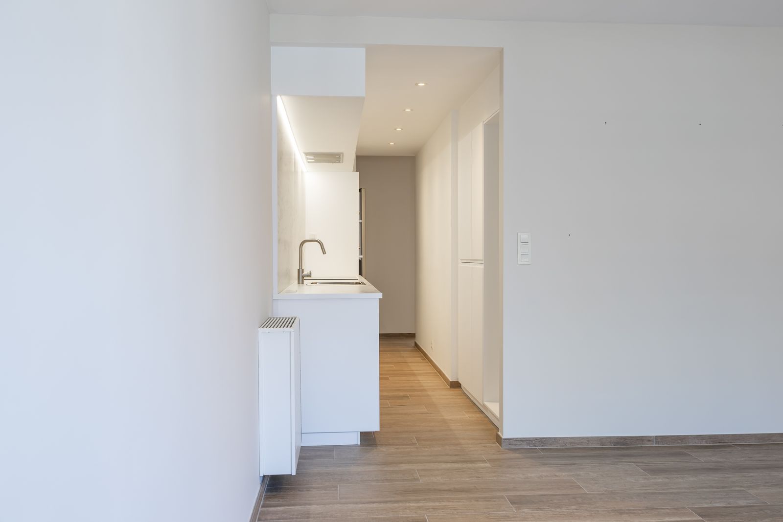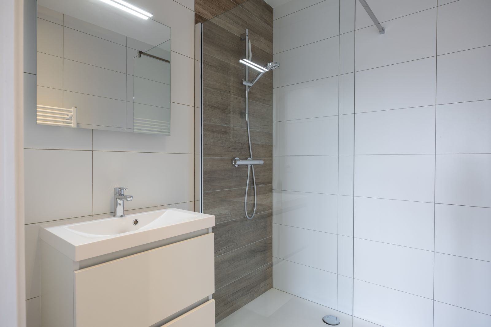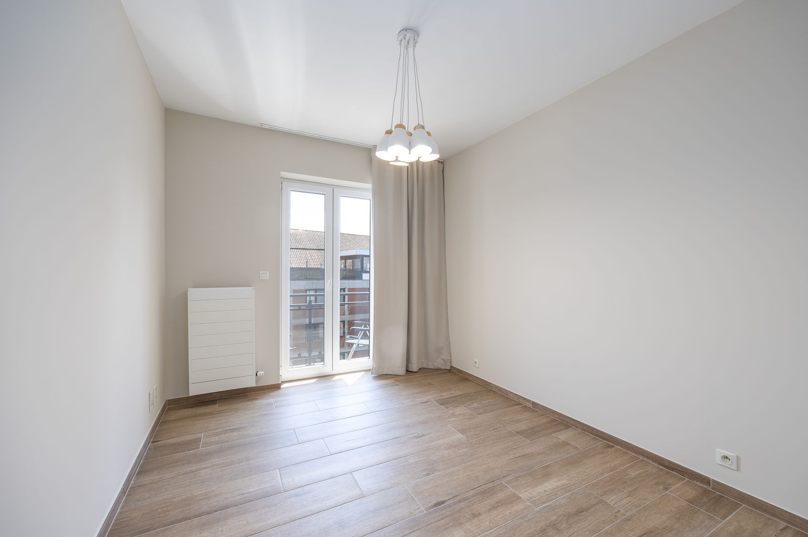 INDELING: Inkomhal met vestiaire, lichtrijke leefruimte met toegang tot het terras, volledige uitgeruste keuken met aansluiting voor wasmachine/ droogkast, 2 slaapkamers waarvan 1 toegang biedt tot zonnig terras langs de achterzijde, badkamer met inloopdouche - wastafel, afzonderlijk toilet.