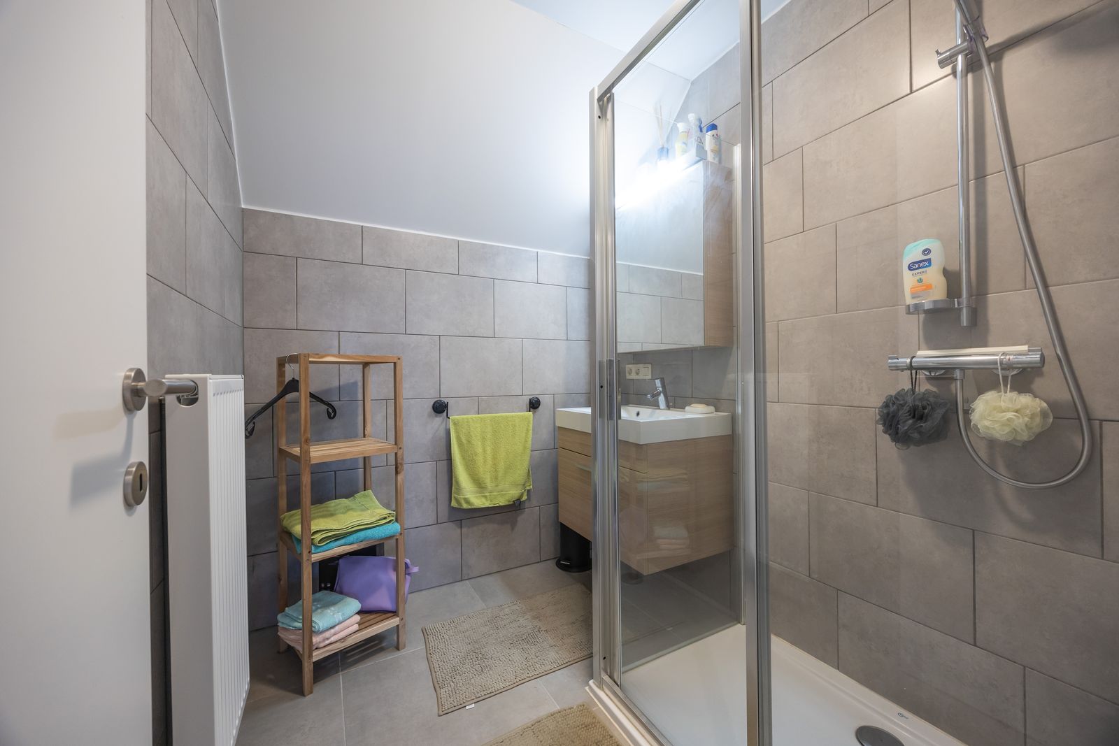 Indeling: inkom, gezellige en lichtrijke woonkamer, utigevend op zongericht terras, grote volledig ingerichte keuken met aansluitende berging, afzonderlijk toilet, trap naar boven, slaapkamer, badkamer met inloopdouche, berging, afzonderlijk toilet, tweede volwaardige slaapkamer.