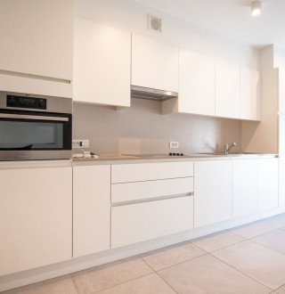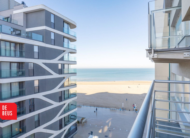 indeling: inkom, lichtrijke woonkamer met raampartijen tot op de grond, balkon met fantastisch lateraal zeezicht, ingerichte keuken, afzonderlijk toilet, badkamer voorzien van ligbad, bidet en wastafel, twee volwaardige slaapkamers, terras achteraan. Privatieve kelderberging inbegrepen.