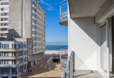 INDELING: Inkomhal met vestiare, lichtrijke leefruimte, volledig uitgeruste open keuken, slaaphoek, zonnig terras met lateraal zeezicht, badkamer met wastafel - toilet - ligbad, berging met aansluiting voor wasmachine en droogkast.