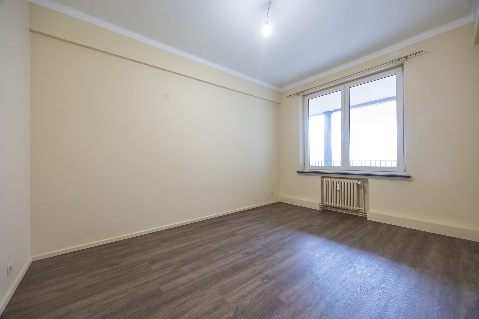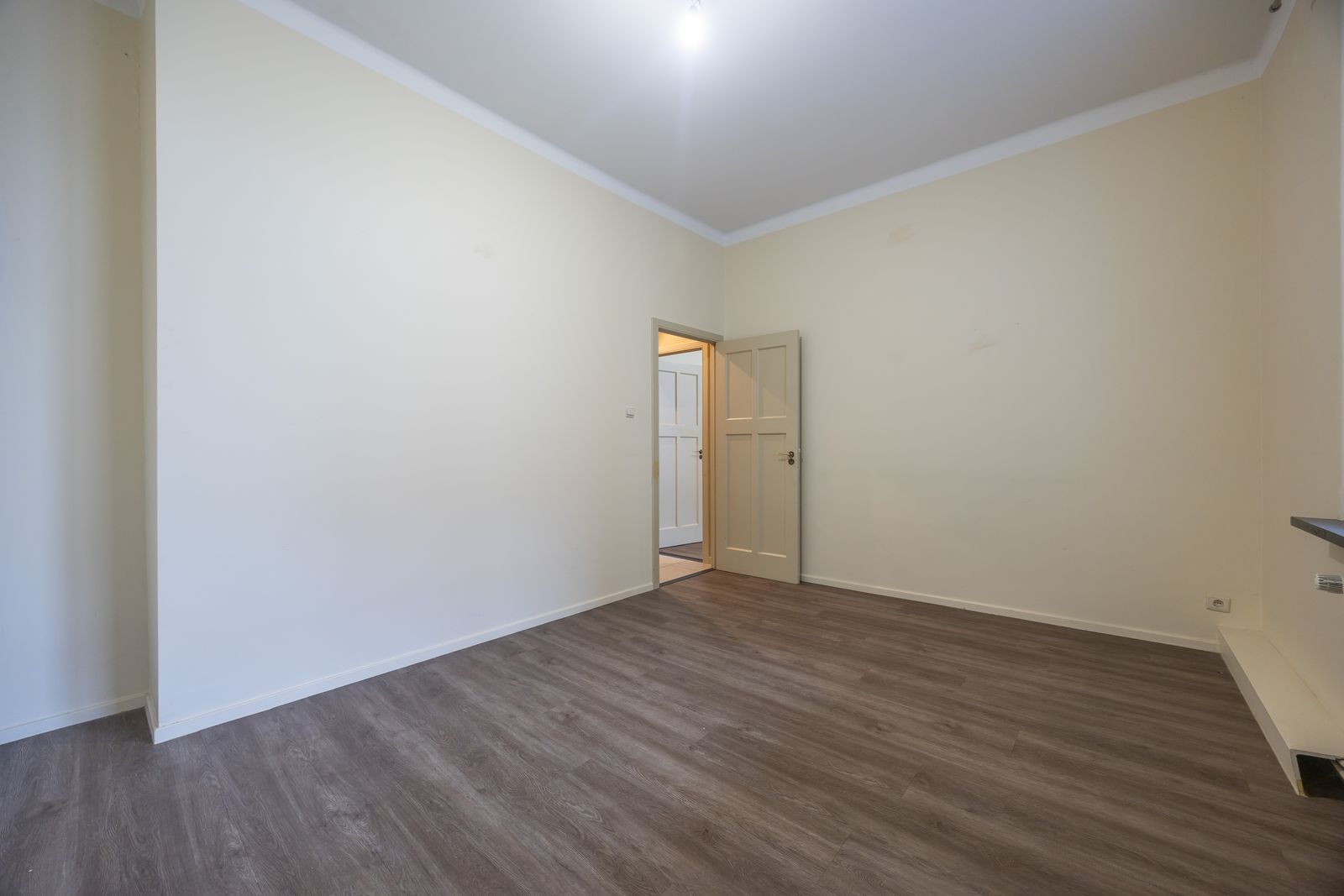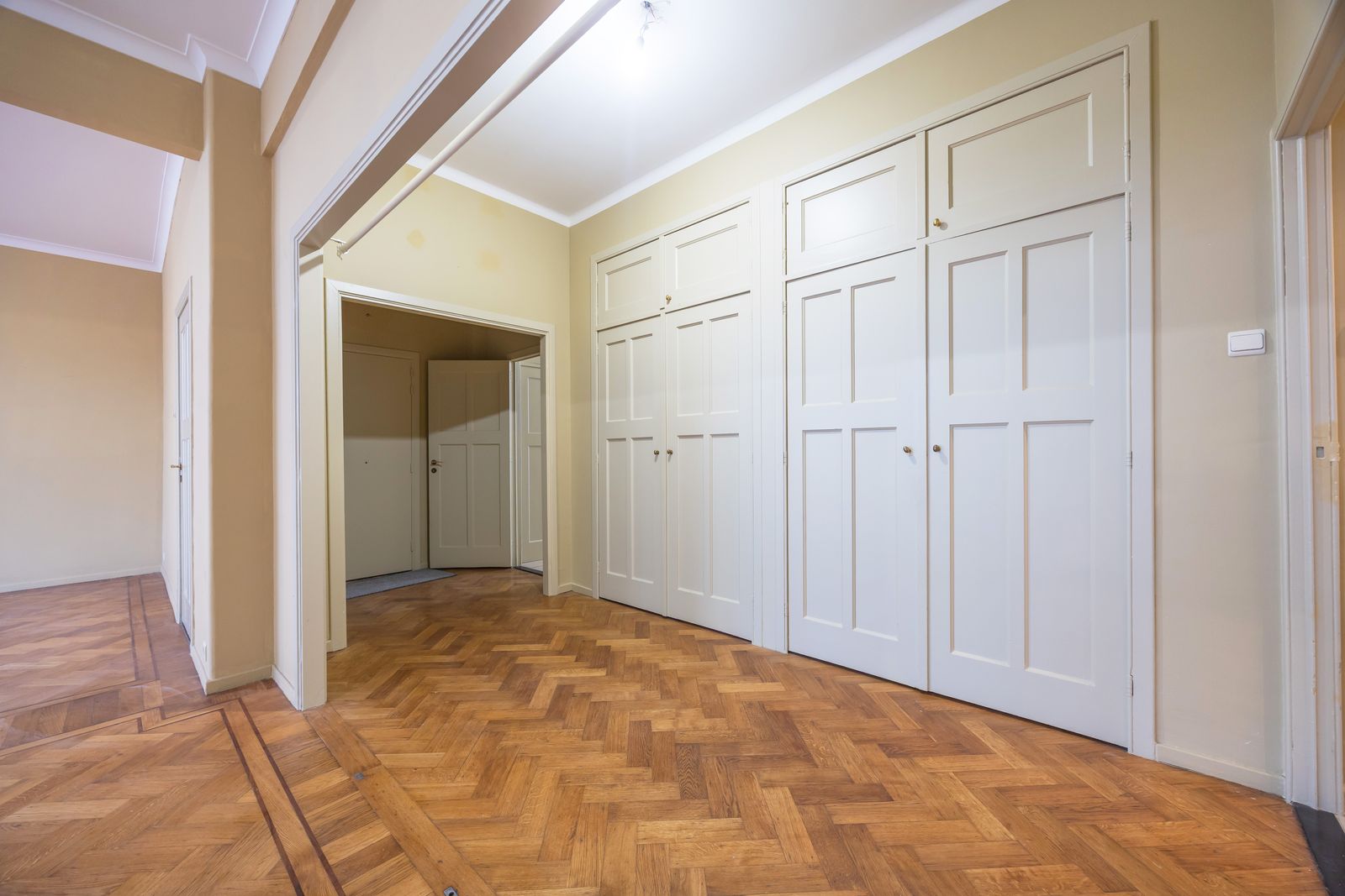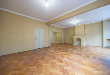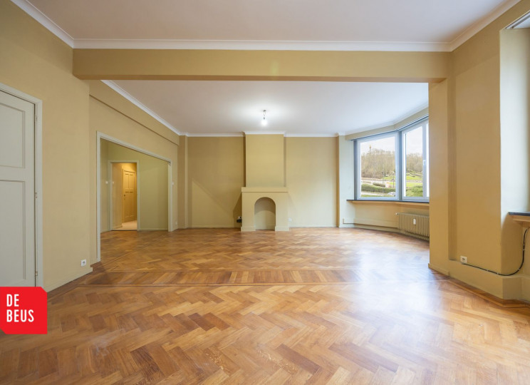 De royale leefruimte wordt gekenmerkt door hoge plafonds en grote raampartijen die zorgen voor een overvloed aan natuurlijk licht en een prachtig lateraal zicht op het omliggende park — een uniek en groen perspectief midden in de stad. Bovendien heeft het authentieke parket een absolute meerwaarde.