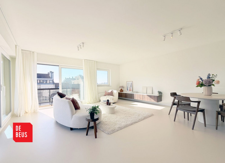 Ontdek dit prachtige volledig gerenoveerde hoekappartement, gelegen op de 4de verdieping residentie "Ter Strandwege".