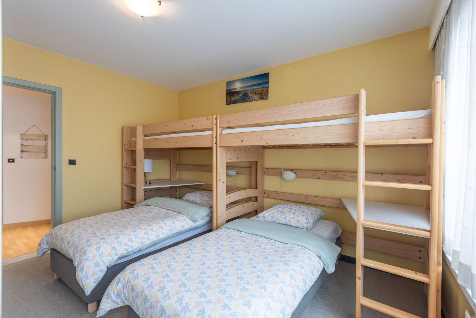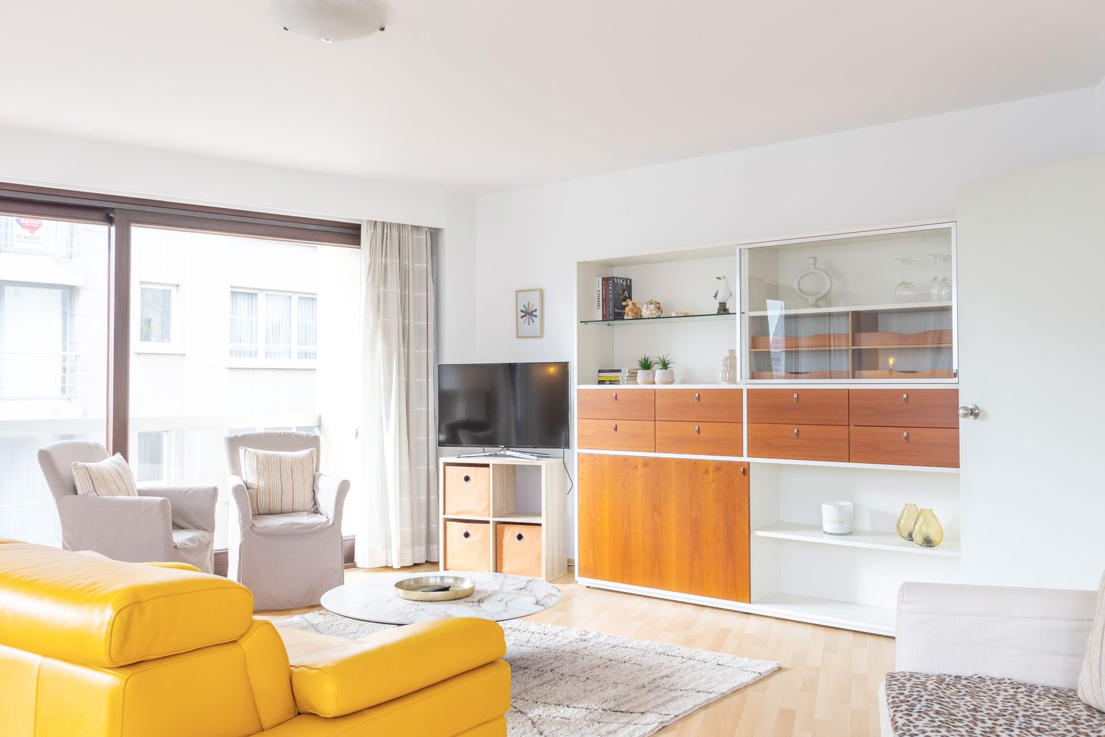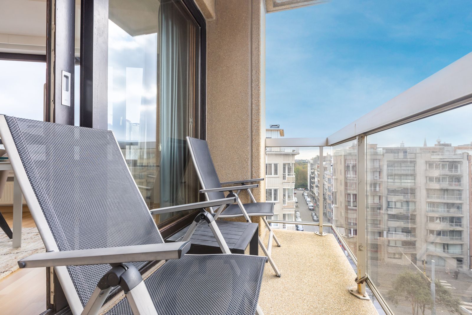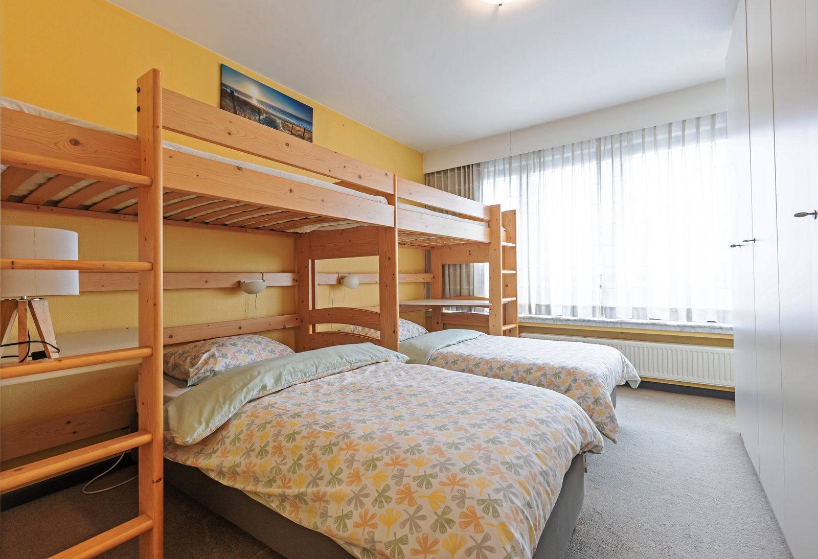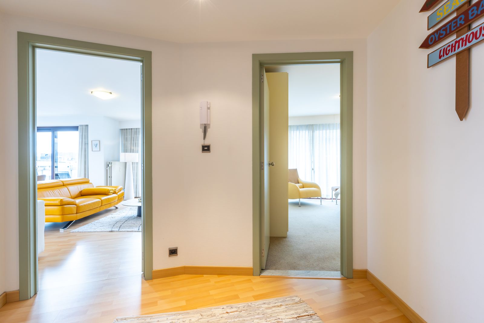 Indeling: inkomhal, berging, lichtrijke en royale leefruimte met veel raampartijen, terras waar u geniet van lateraal zeezicht alsook zicht naar het Leopoldpark, volledig ingerichte keuken met veel opbergruimte, grote slaapkamer met lateraal zeezicht en ensuite badkamer (ligbad, dubbele wastafel en toilet), tweede slaapkamer, douchekamer met enkele wastafel, afzonderlijk toilet, berging.