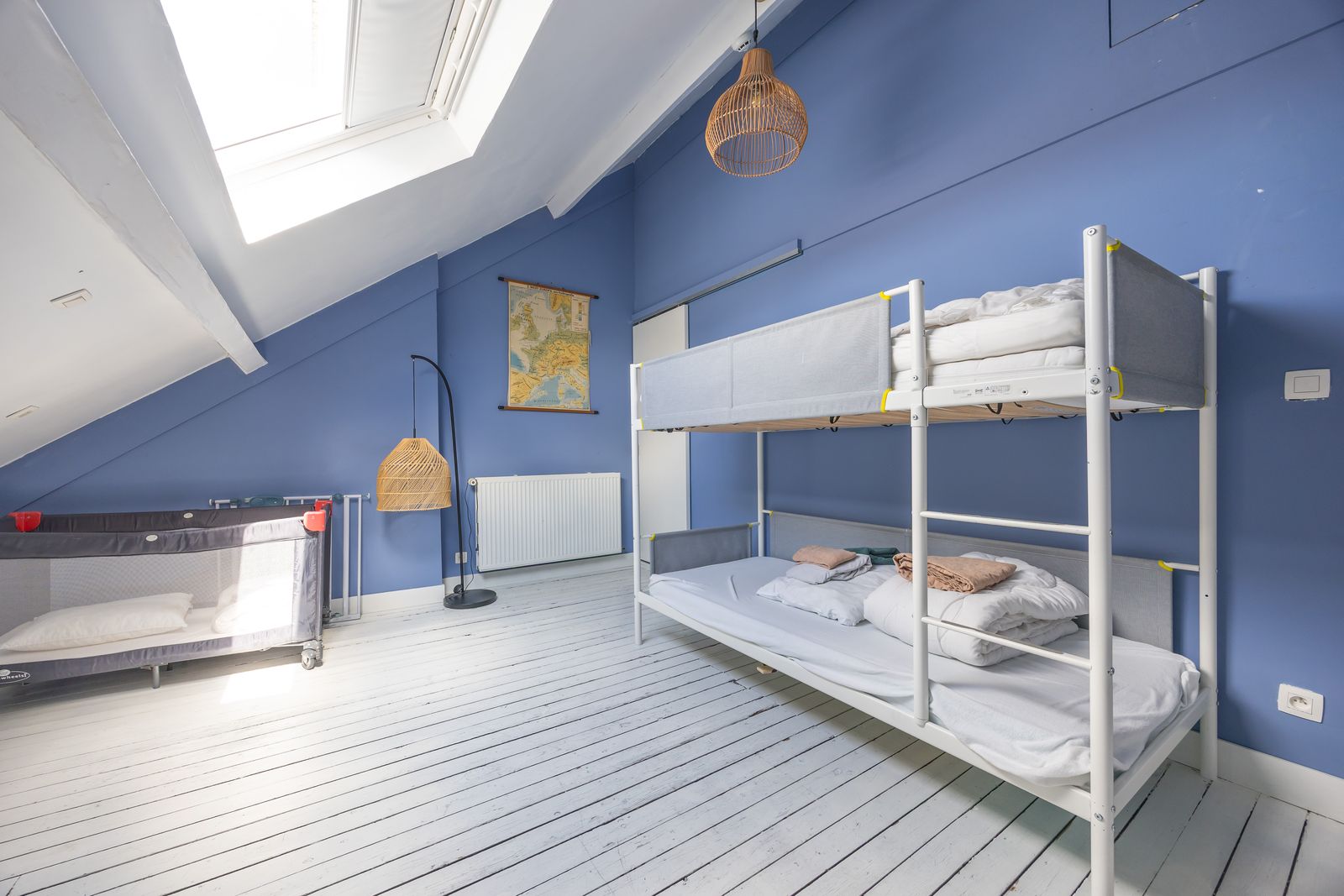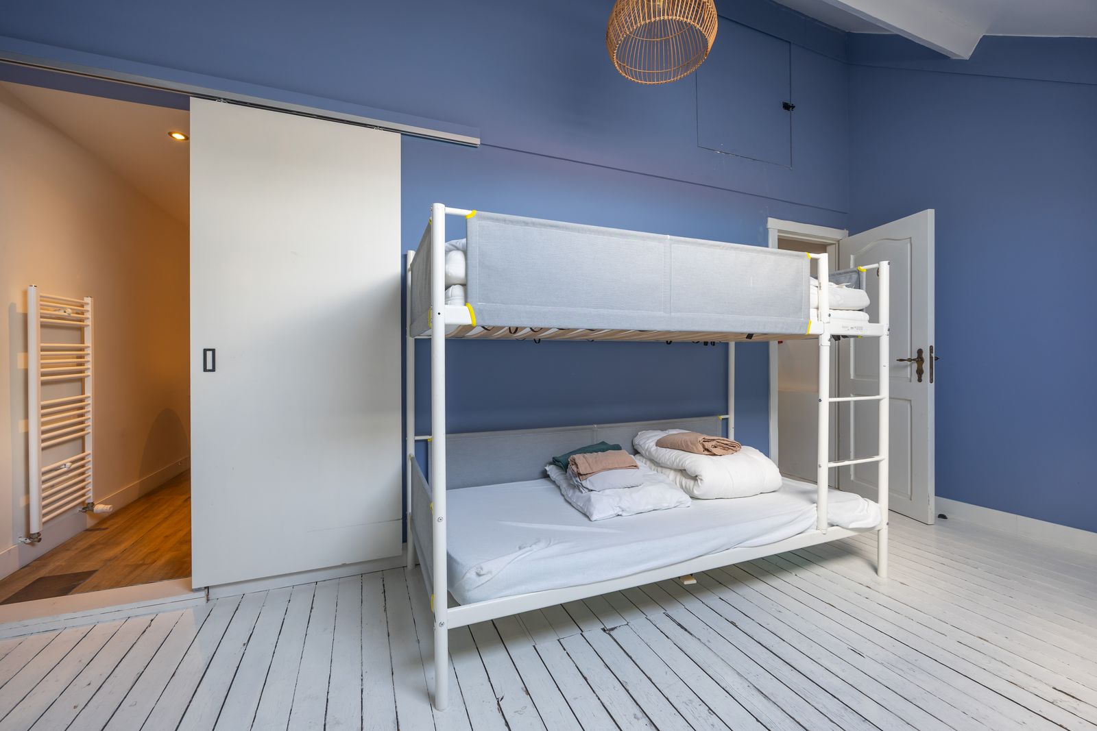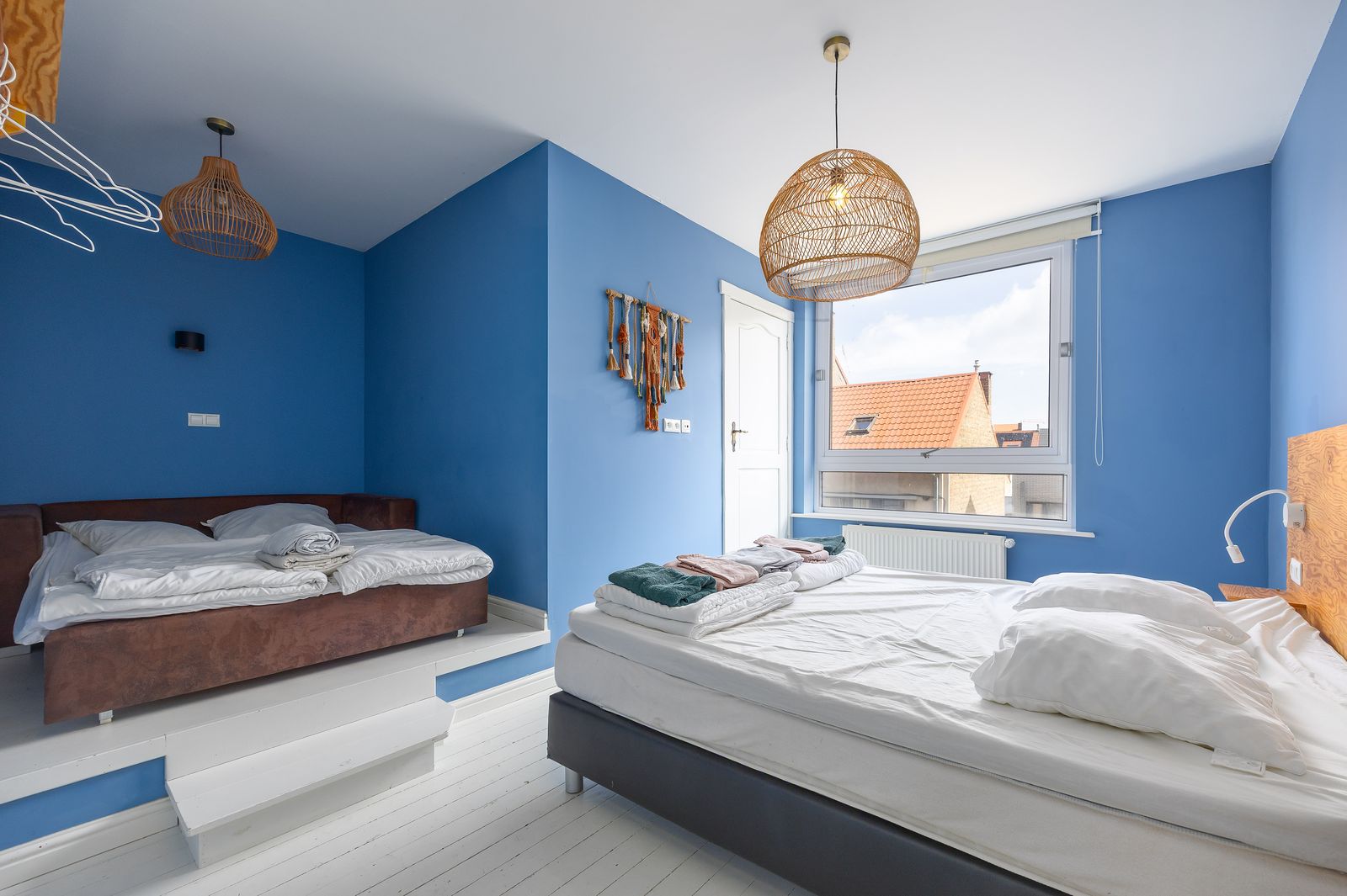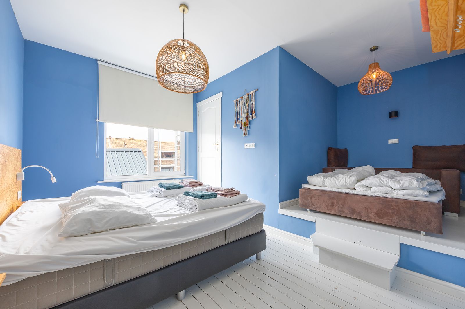 De eerste en tweede verdieping zijn telkens ingericht als volgt: slaapkamer met aangrenzende badkamer én een familiekamer met ensuite badkamer.