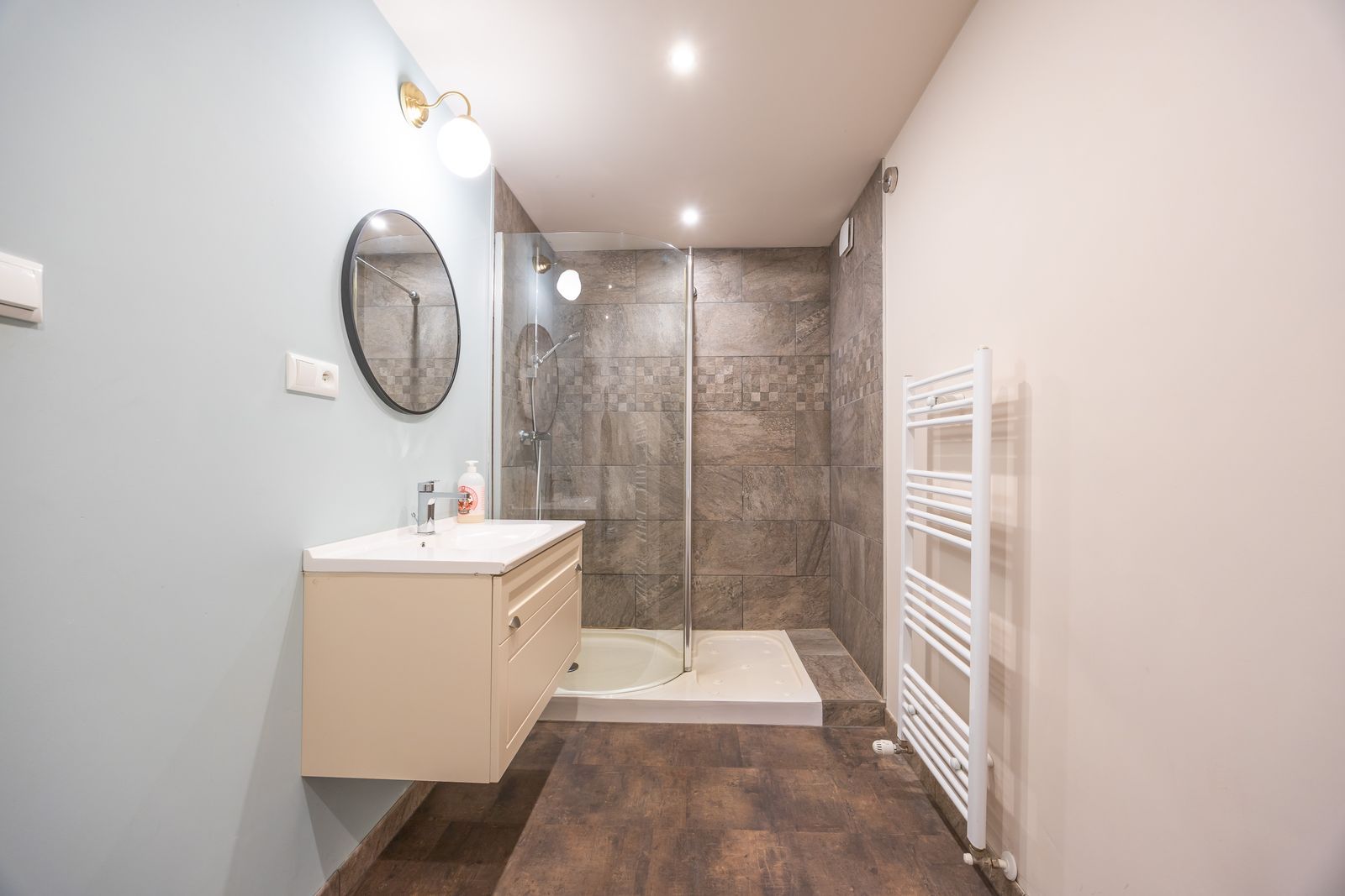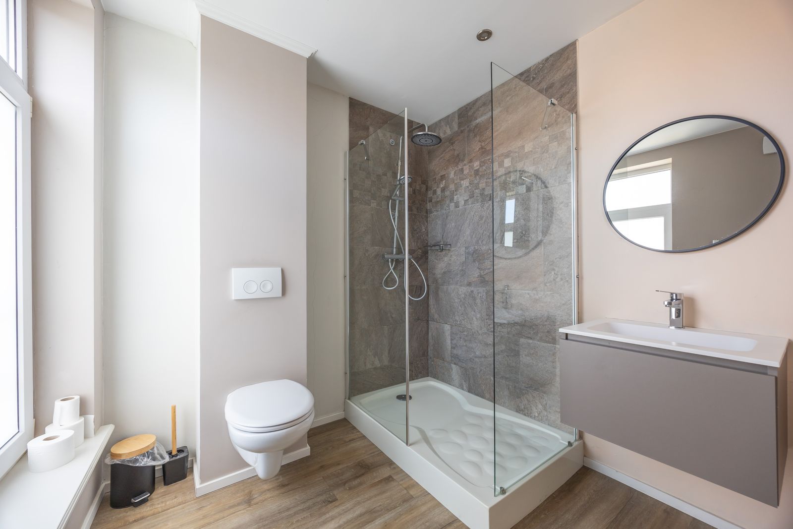 Zithoek (mogelijk aan te passen tot extra slaapkamer), met gezellig terras en badkamer met inloopdouche en toilet.